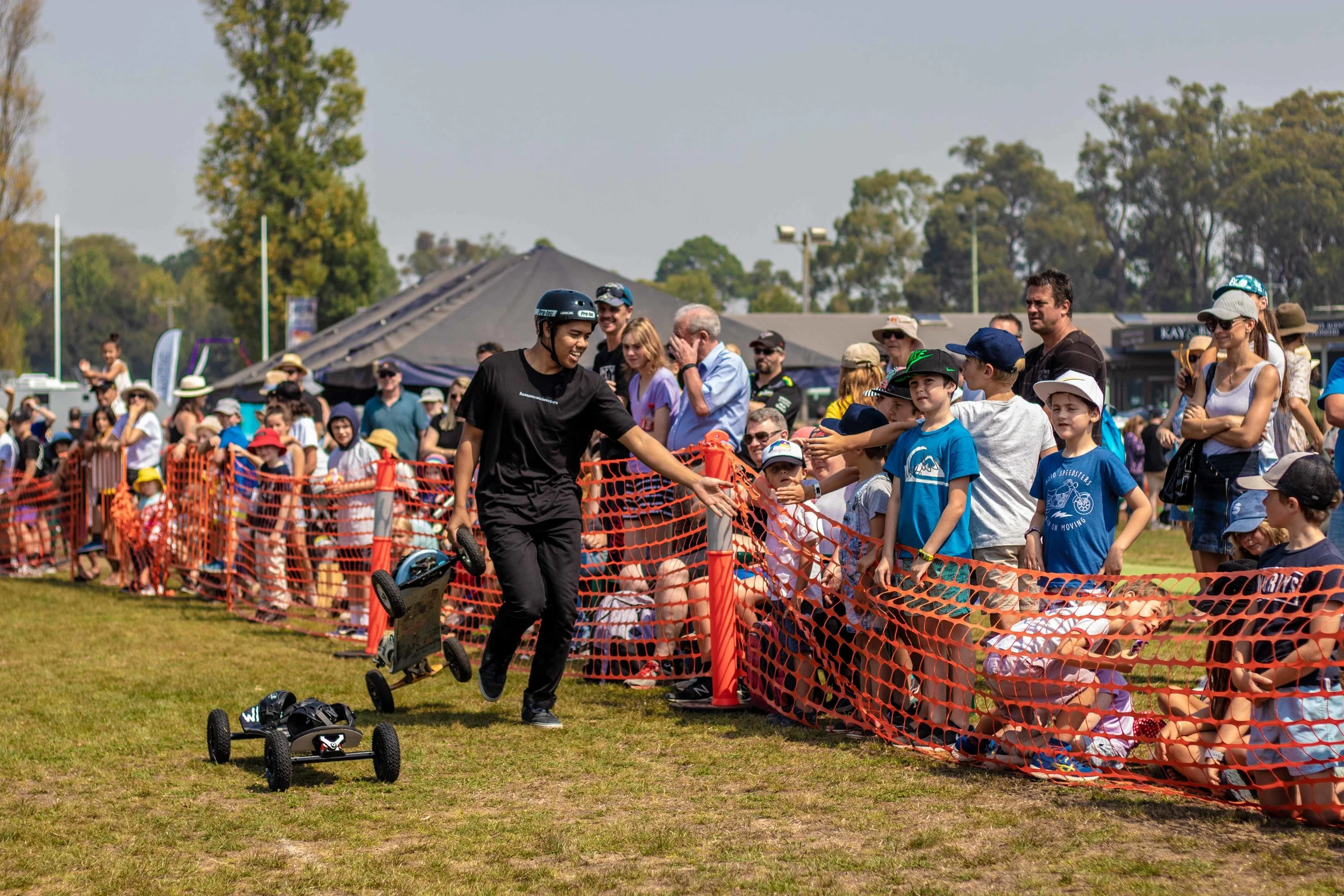The team at Australian Mountainboarders has been performing at the Red Hill Show for 4 years now! One of the teams favorite Melbourne shows, we sure were stoked to go back once again. For those who don’t know Red Hill is a little place out on the Mornington Peninsula. Only 15 minutes away from the Mountain Board park we have been building at Ace-Hi. So the awesome thing about this years Stunt Show at Red Hill was that we could introduce people to Mountainboarding then invite them to come Mountainboarding again at Ace-Hi.